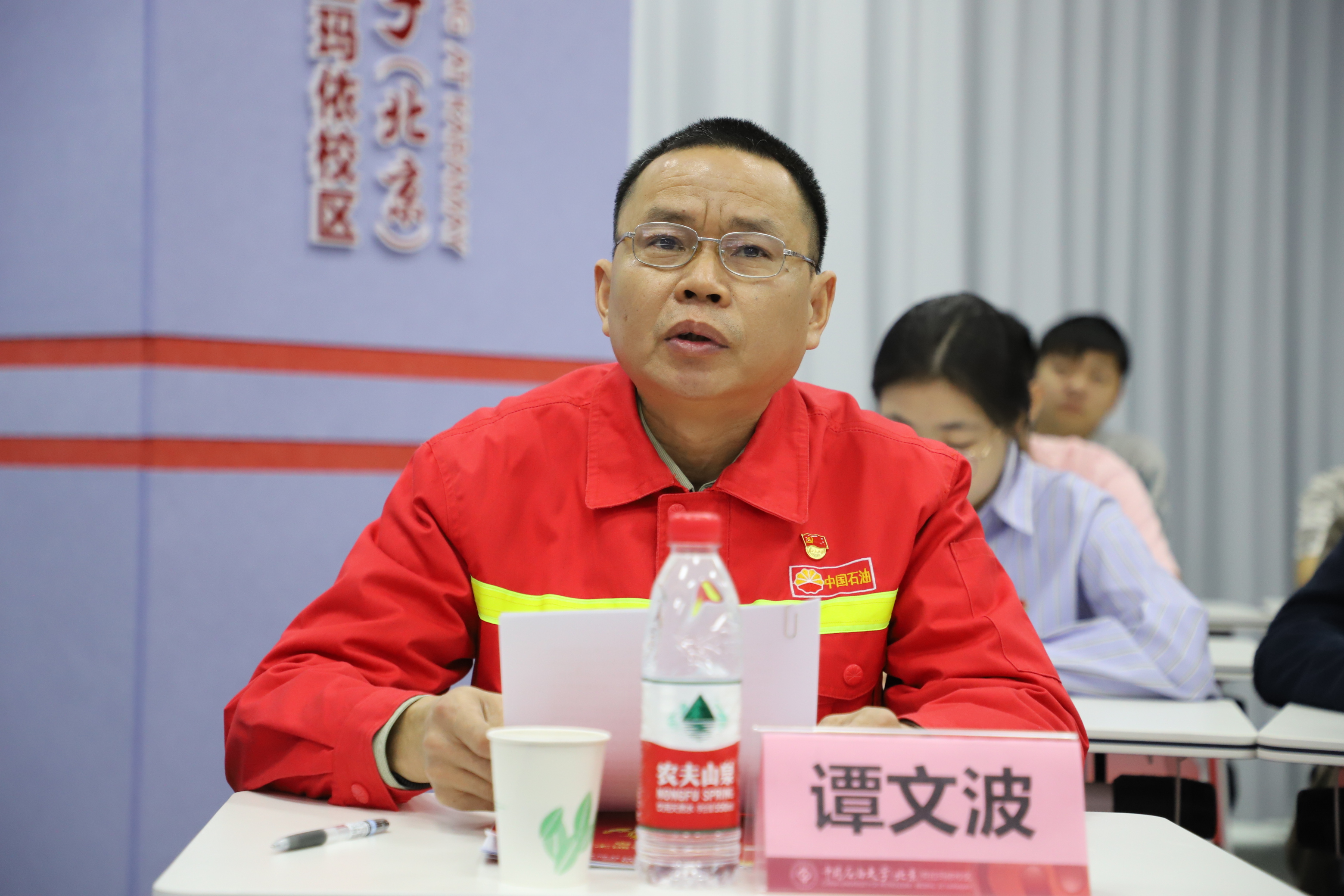 谭文波扎根新疆30余载,勤奋开展技术革新,成为拥有多项国家发明专利的油田“发明家”、全国劳动模范、大国工匠。他以“殷殷嘱托记心间,踔厉奋发献石油”为题作了发言,他说,“我们每一次用钻头探索地层的深度,都将奠定祖国崛起的高度!”他鼓舞同学们要有铁人的血性和壮志,将自己的人生和人民的事业紧紧相连,奔赴基层一线,树立远大理想,在“祖国最需要的地方”建功立业。