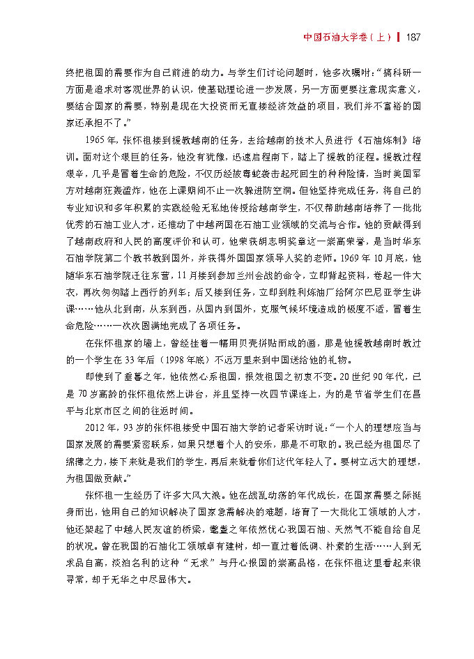 “一个人的理想应当与国家发展的需要紧密联系,如果只想着个人的安乐,那是不可取的。”