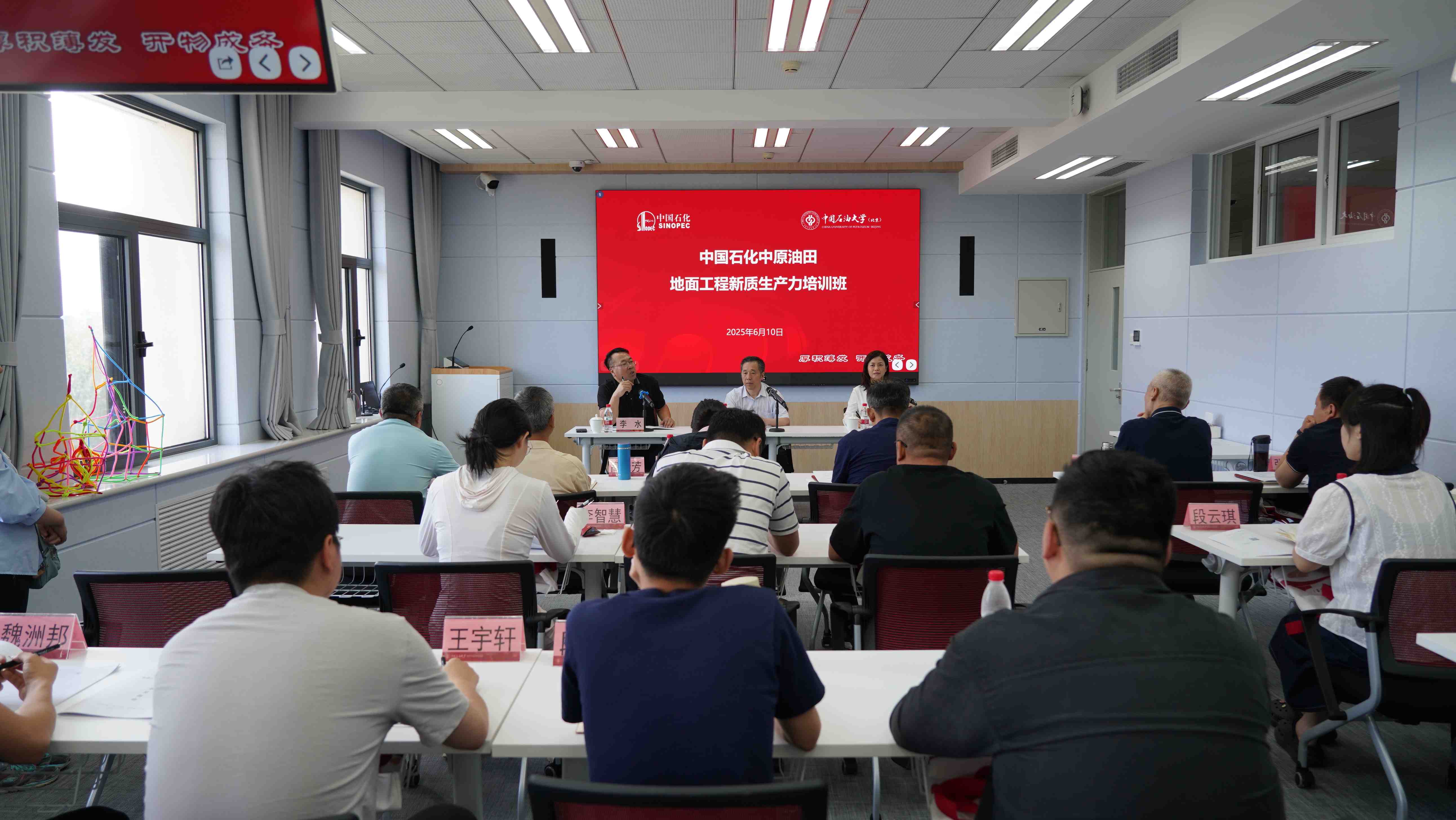6月10日,中国石化中原油田地面工程新质生产力培训班在中石大开班。中石化中原油田分公司工程技术管理部高级专家瞿定祥,我院副院长李水,我院高层次人才发展中心主任郝小莉,以及培训班参训学员等参加开班式。