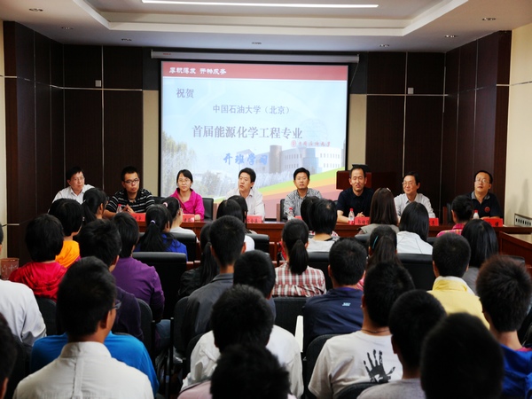 会议由教学副院长孟祥海主持,教务处詹亚力处长、化学工程学院郭绪强书记和高金森院长分别进行了讲话。詹亚力向同学们介绍了学校多年来对于能源化学工程专业的申报历程,强调了学校对于新专业建设的重视,希望同学们珍惜来之不易的求学机会,努力提升自己能力,早日成为国家栋梁。化工学院分党委书记郭绪强为同学们介绍了开设能源化学工程专业的背景,就当前国内的能源现状,以及专业的发展前景做了一个较为全面的阐述,解开了同学们心中的诸多疑惑。最后,化工学院院长高金森向同学们顺利通过高考,并以优异的成绩考入中国石油大学表示了祝贺,他希望同学们尽快适应大学的学习生活,以踏实的学习作风,端正的学习态度来迎接未来的挑战。