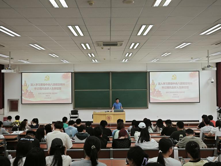 在全党上下开展深入贯彻中央八项规定精神学习教育之际,6月12日下午,化学工程与环境学院党委书记詹亚力面向2025届毕业生党员讲授离校前“最后一堂党课”。化学工程与环境学院辅导员代表、2025届200余名毕业生党员参会。