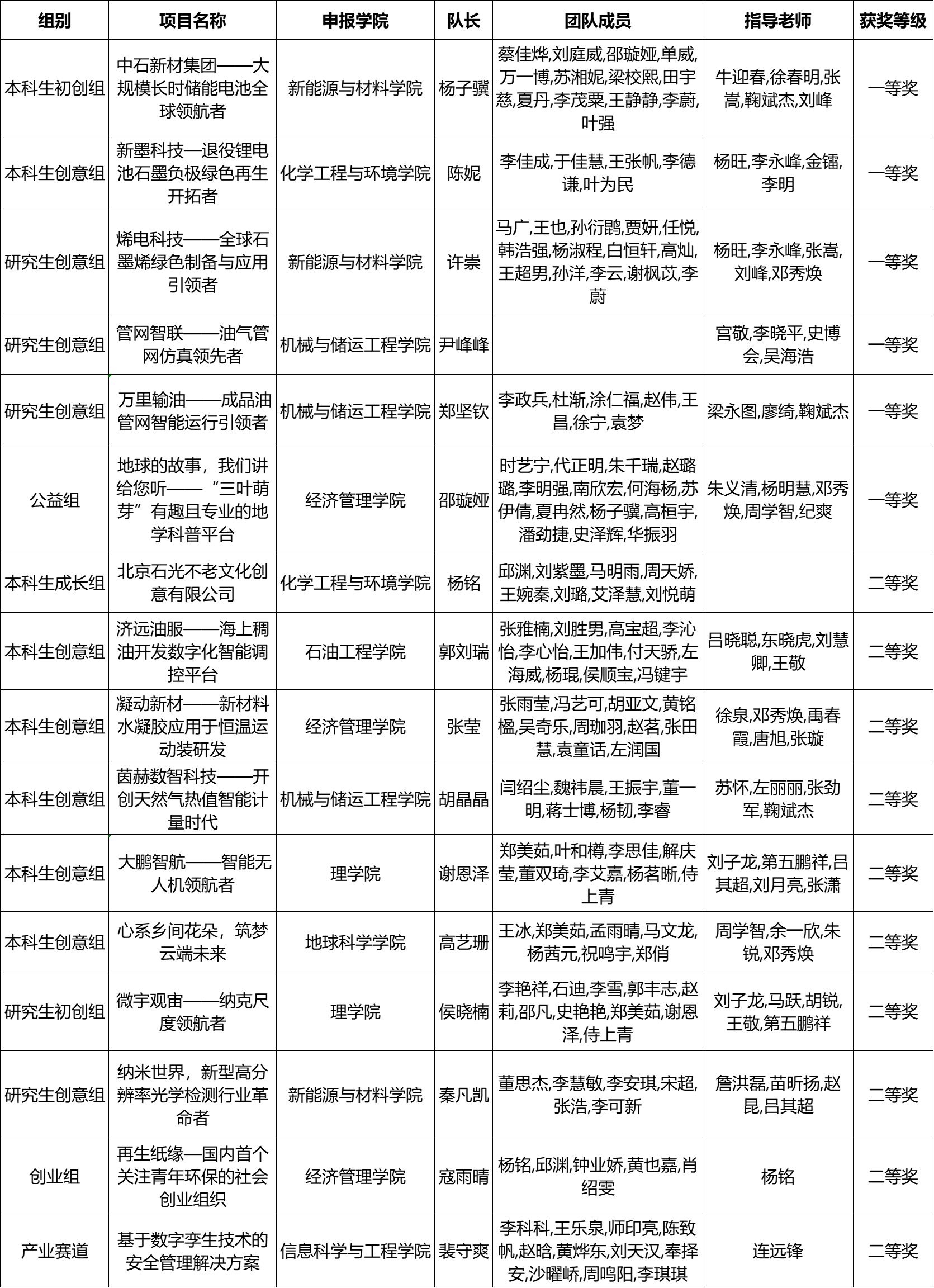 第八届中国“互联网+”大学生创新创业大赛分为本科生创意组、初创组、成长组;研究生创意组、初创组、成长组;“青年红色筑梦之旅”创意组、创业组、公益组;产业赛道等组别。由新能源与材料学院申报的项目“中石新材集团——大规模长时储能电池全球领航者”入围主赛道十强项目,由经济管理学院申报的项目“地球的故事,我们讲给您听——‘三叶萌芽’有趣且专业的地学科普平台”获学校在青年筑梦红色之旅赛道中的首个北京赛区一等奖。