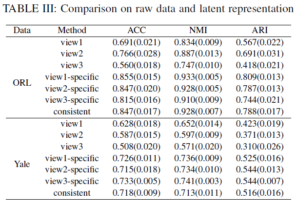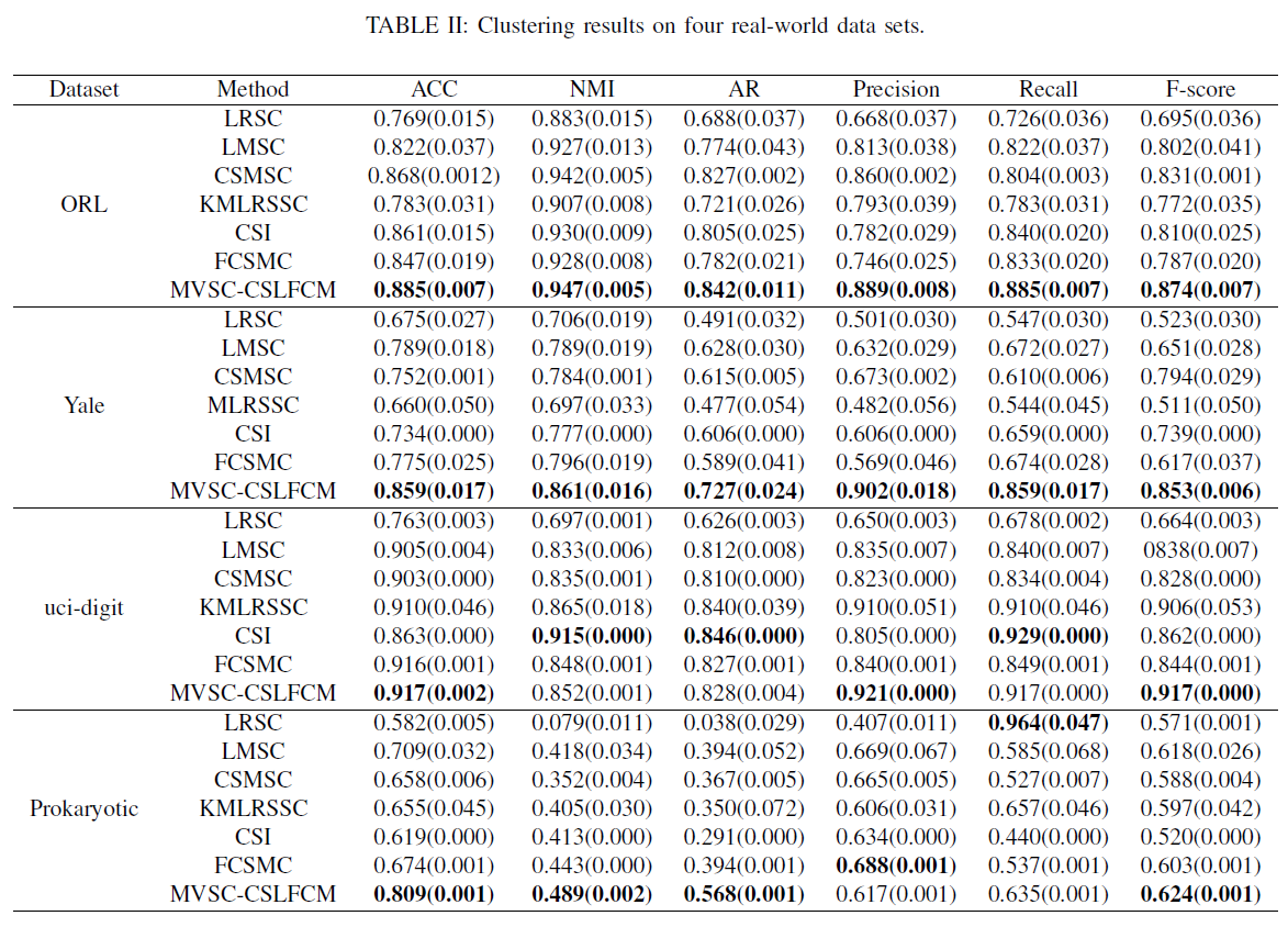 (1)通过同时考虑多个视图的一致性与互补性信息,我们提出的隐因子提取算法能够帮助MVSC-CSLFS获取更加紧凑且完备的隐表示,且能将隐表示中这些耦合的信息分离,使隐表式有更为明确的语义信息。