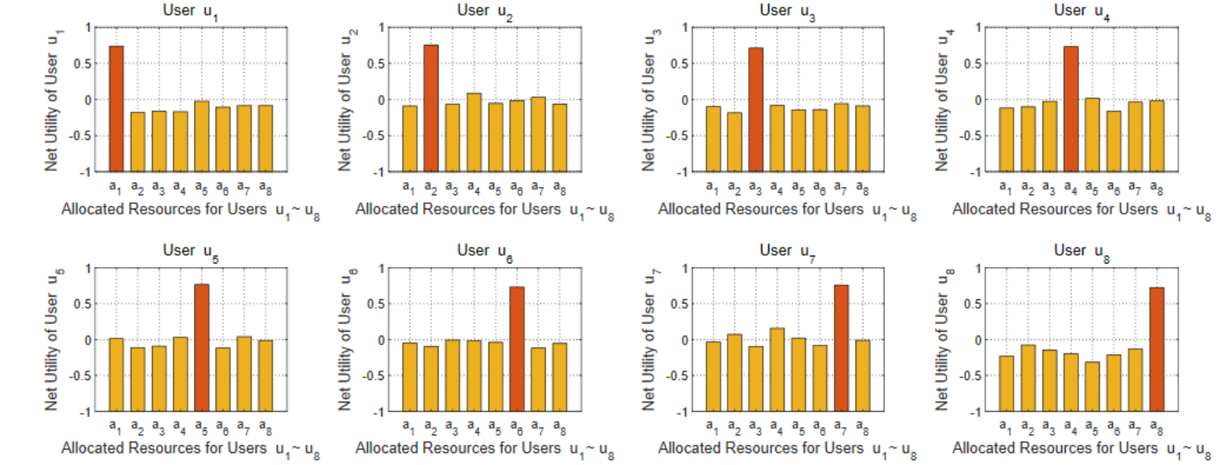 不同用户之间资源分配的净效用比较结果