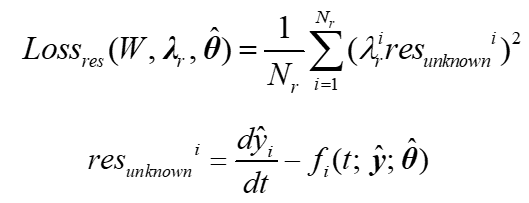 MRLSTM的机理正则化部分定义为下式。其中,na为解空间中随机分布的配置点数量。显然,resi表示第i个常微分方程与模型输出在na个配置点下的残差之和。