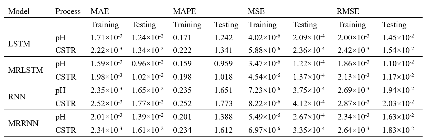 以pH中和过程与CSTR过程为例进行实验,验证SA-MRLSTM模型和相应双层优化算法的有效性和优越性,以及在CSTR机理方程参数k0未知的情况下所提出的训练算法的鲁棒性。