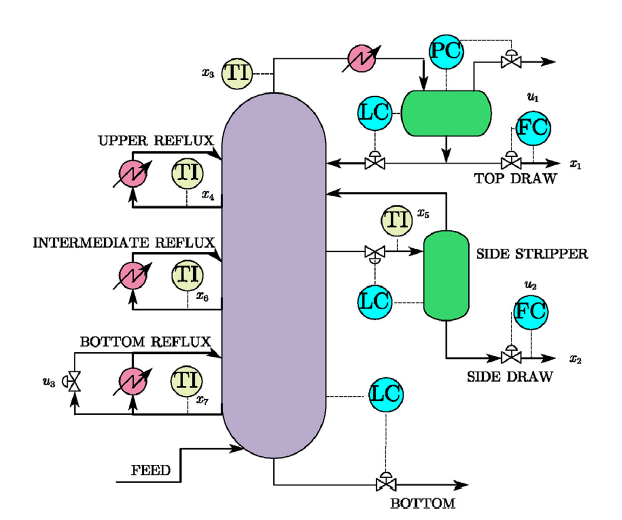 生产过程的效益包括许多综合因素,其中产品的销售占主要部分。 产品的销售与产品的质量有关,例如产品中每种组分的比例。 因此,在设计控制策略时,通常将每个组分或可以表征这些组分的其他变量(例如压力和温度)用作控制变量。 但是,这种简单的考虑忽略了额外的成本,例如能耗和污水处理。 同时,这些额外成本与系统的输入或输出变量有关。 因此,在设计系统优化策略时应考虑这一部分。