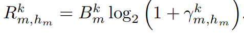 请求用户dm在k信道上选择空闲用户hm的数据传输速率为: