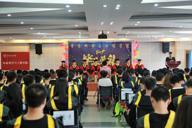 6月27日下午,信息科学与工程学院2019届毕业生毕业典礼在学生活动中心410报告厅举行。学院领导刘伟峰、董艳军、徐宝昌、吴卫江、于迎辉及各系(中心)系主任、教师代表、校友代表、毕业班辅导员及部分毕业生家长加了典礼,共同为信息学院2019届255名毕业生送上祝福。典礼由学院党委副书记董艳军主持。