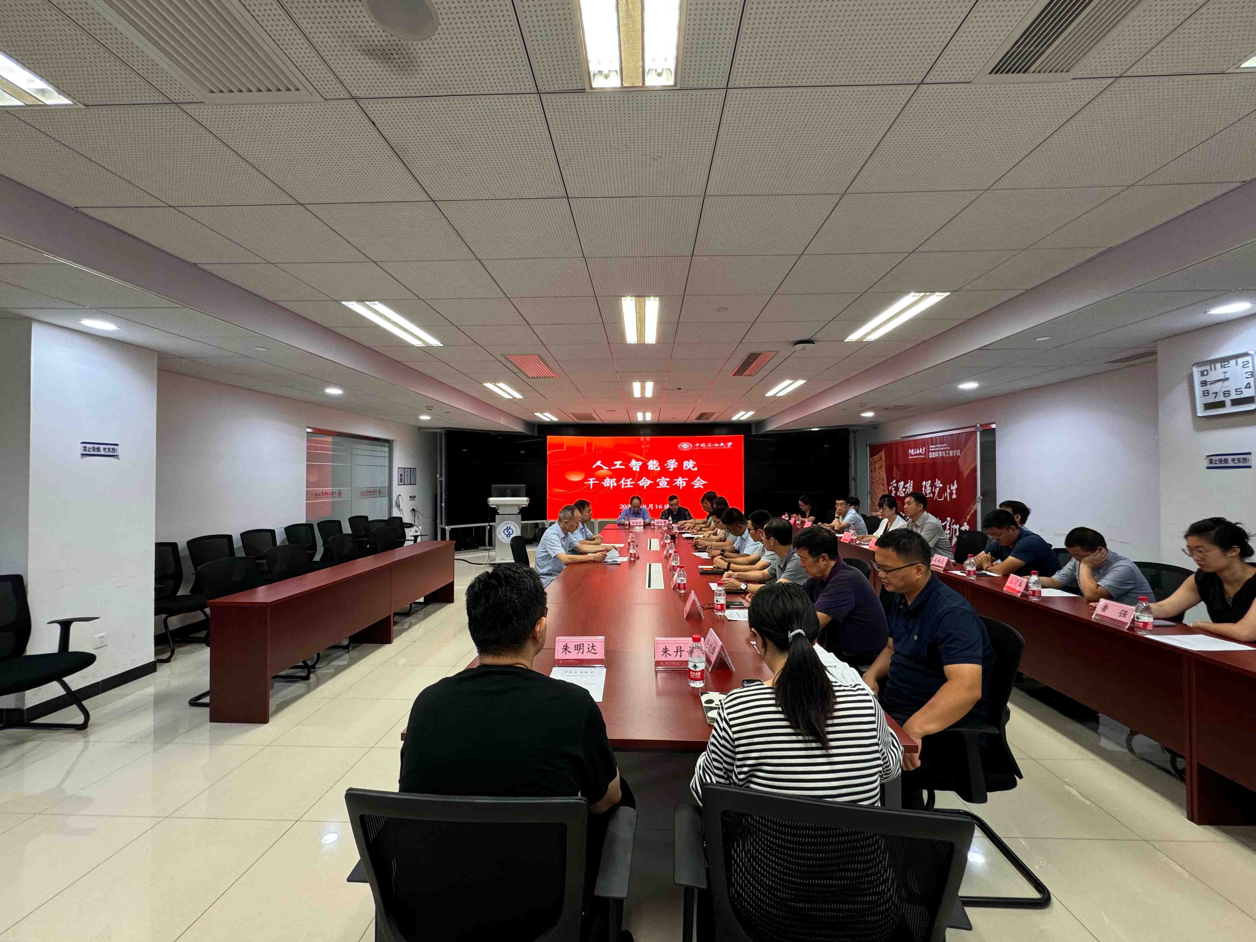 8月16日上午,人工智能学院在主楼B1421会议室召开学院领导干部任职宣布会。副校长鲍志东出席会议,人工智能学院领导班子成员、各系(中心)主任、党支部书记、科级干部及部分教师代表参加会议。会议由组织部副部长肖坤主持。