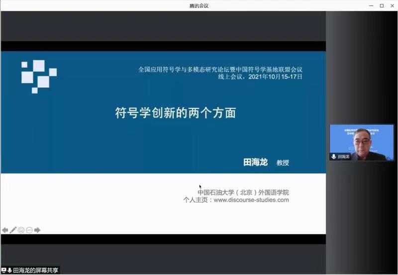 2021年10月15日至17日,“全国应用符号学与多模态研究论坛暨中国符号学基地联盟会议”在同济大学召开,此次论坛通过腾讯会议线上举办。