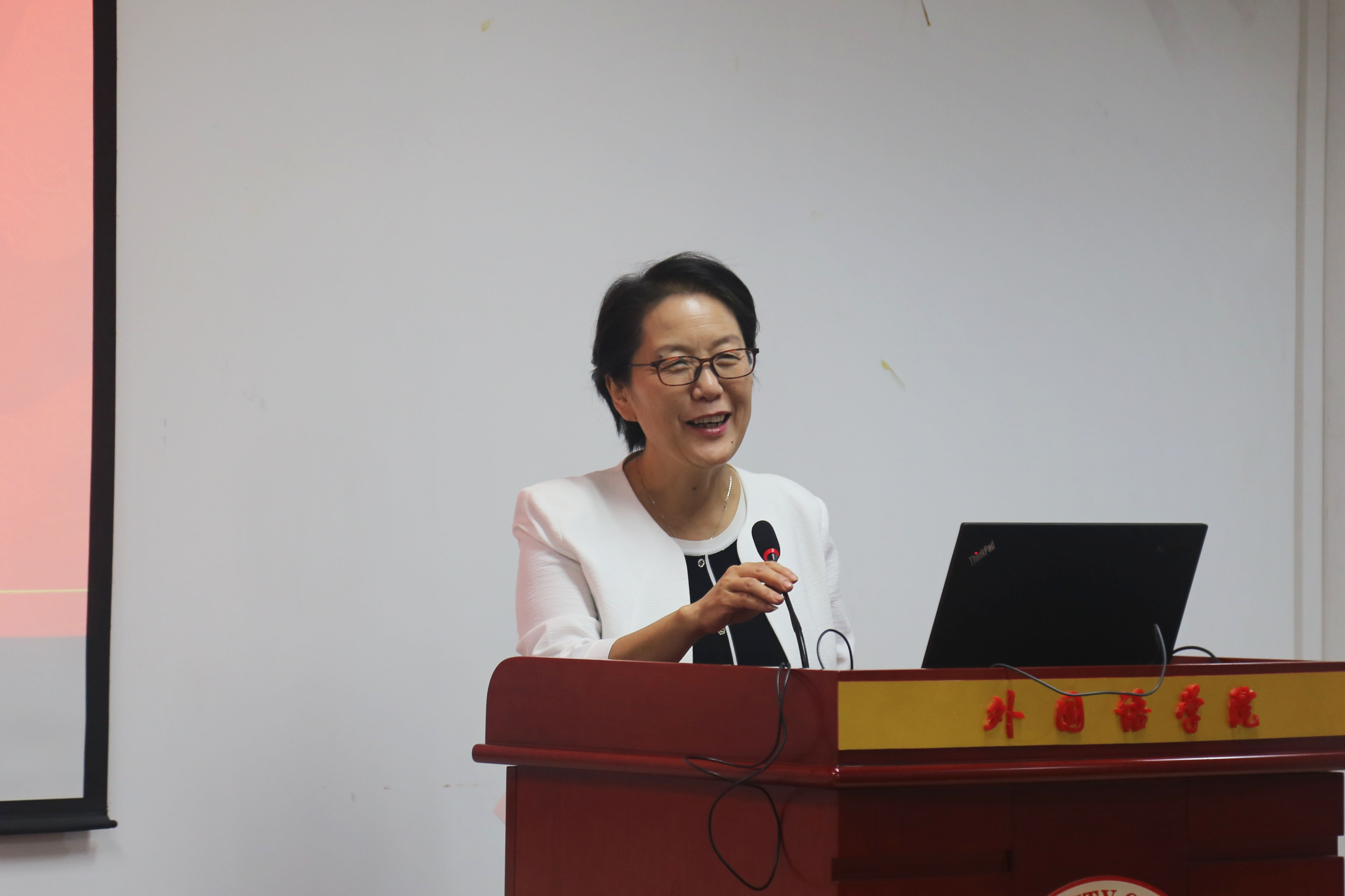 院长赵秀凤代表学院对与会嘉宾的到来表示热烈欢迎,对关心、支持母校发展的退休老教师和校友们致以节日的问候和衷心的感谢。赵秀凤从学院历史沿革、教育教学、人才培养、科研成果等方面汇报了学院近年的发展状况与取得的创新性成果。她指出,学院今天的发展和影响,离不开全体师生的勤勉奋斗,离不开全体退休老同志的关心关怀,离不开全体校友的支持贡献,学院将继续秉承“明德笃行 融通中外”的院训,带着全体外语人的努力与期待,为培养出立大志、明大德、成大才、担大任,堪当民族复兴重任的外语人才而不懈奋斗!