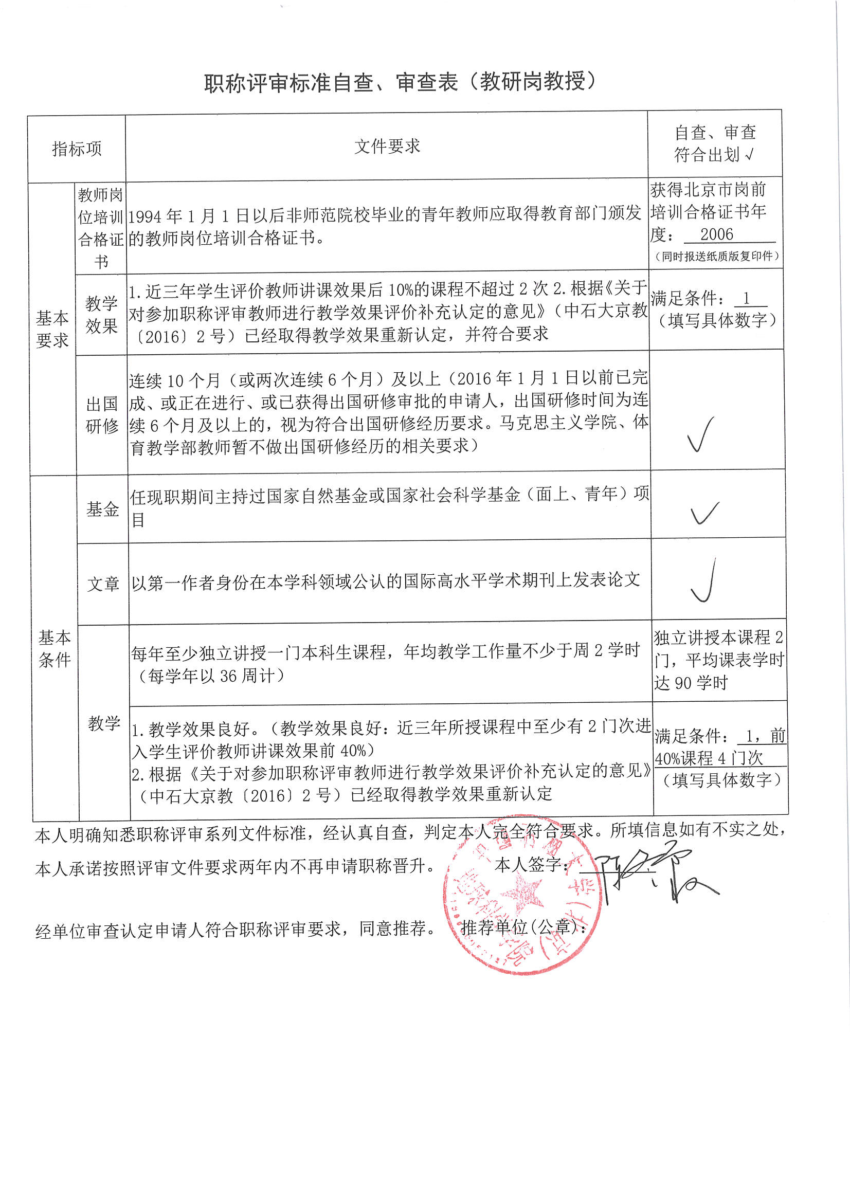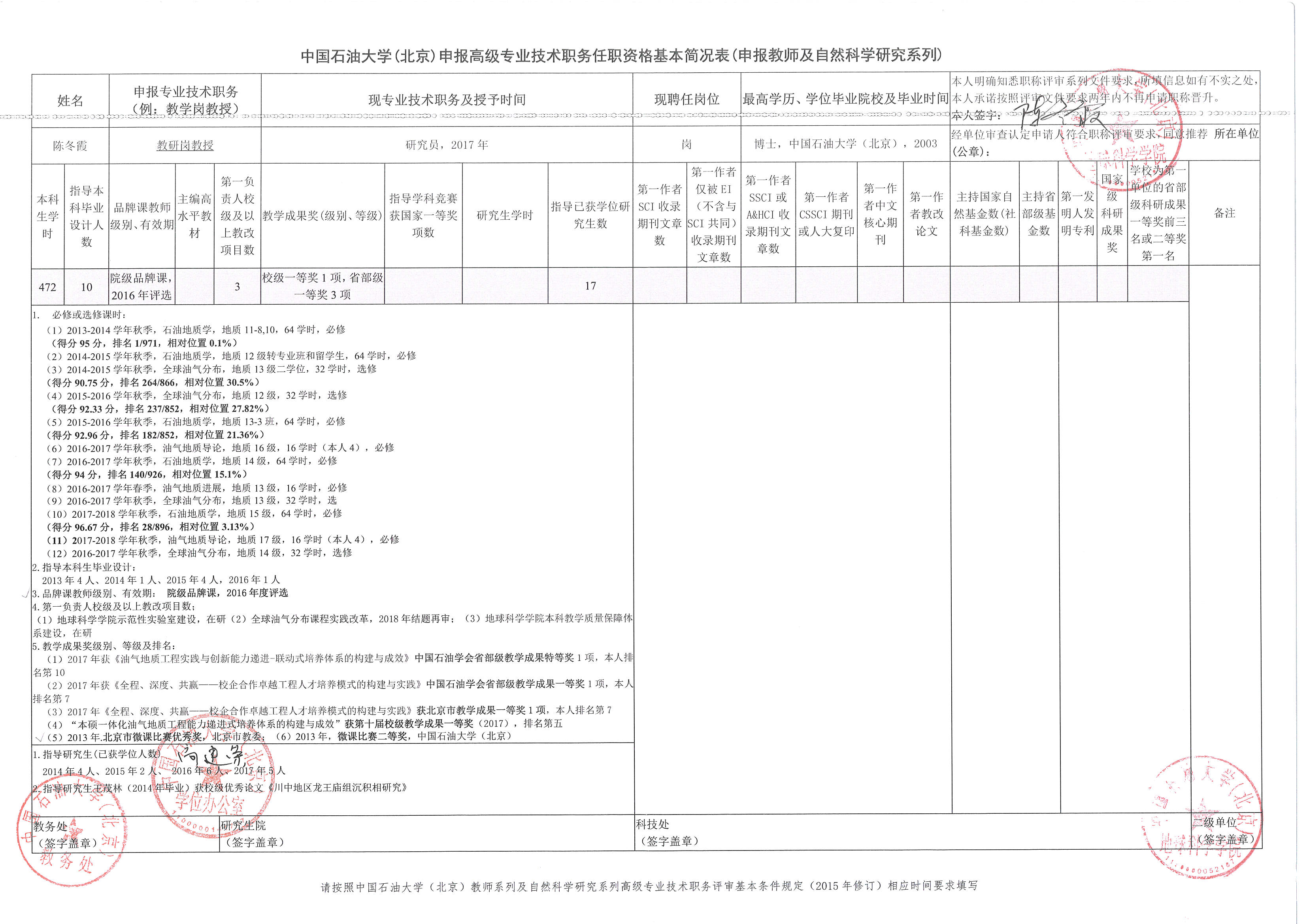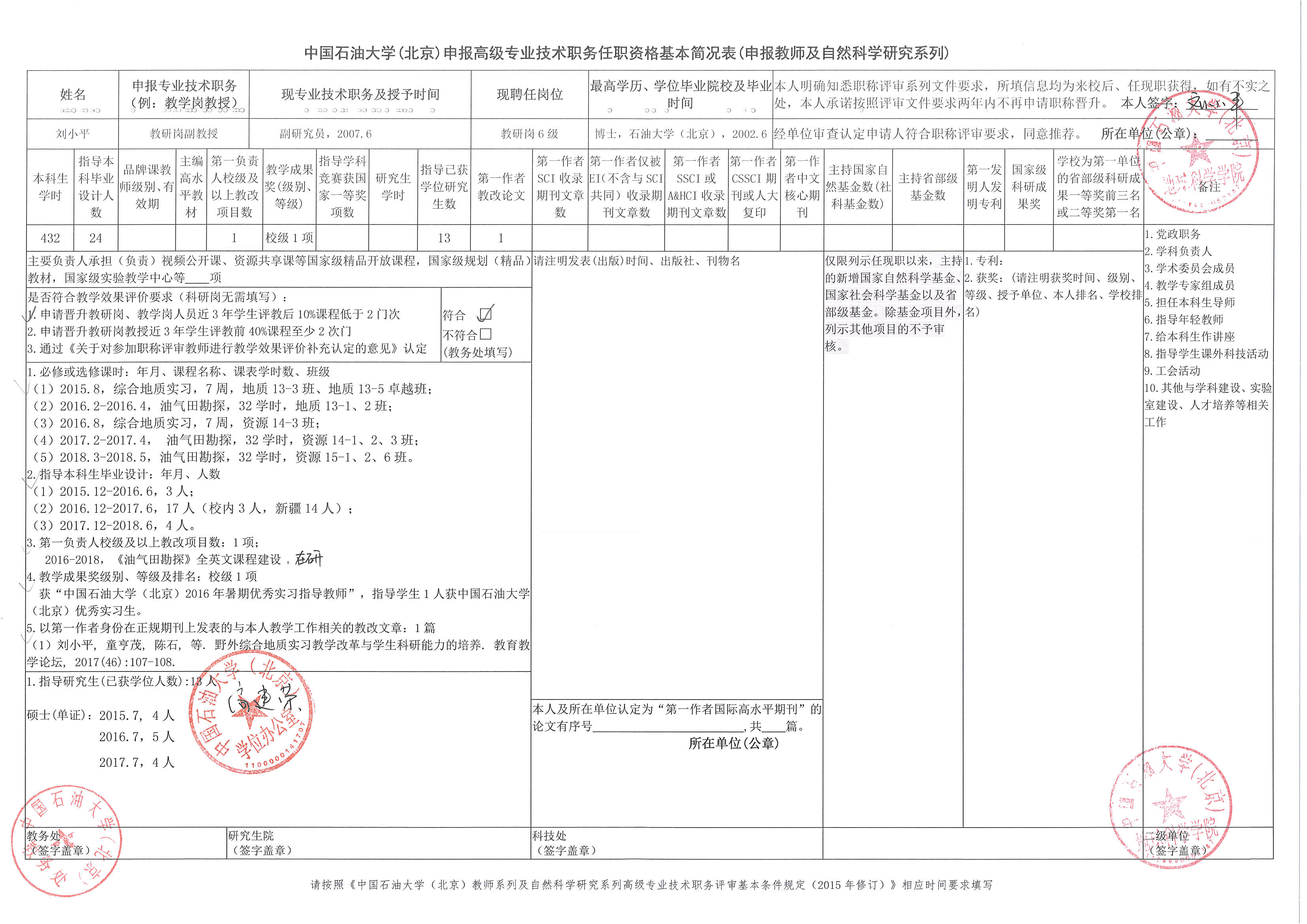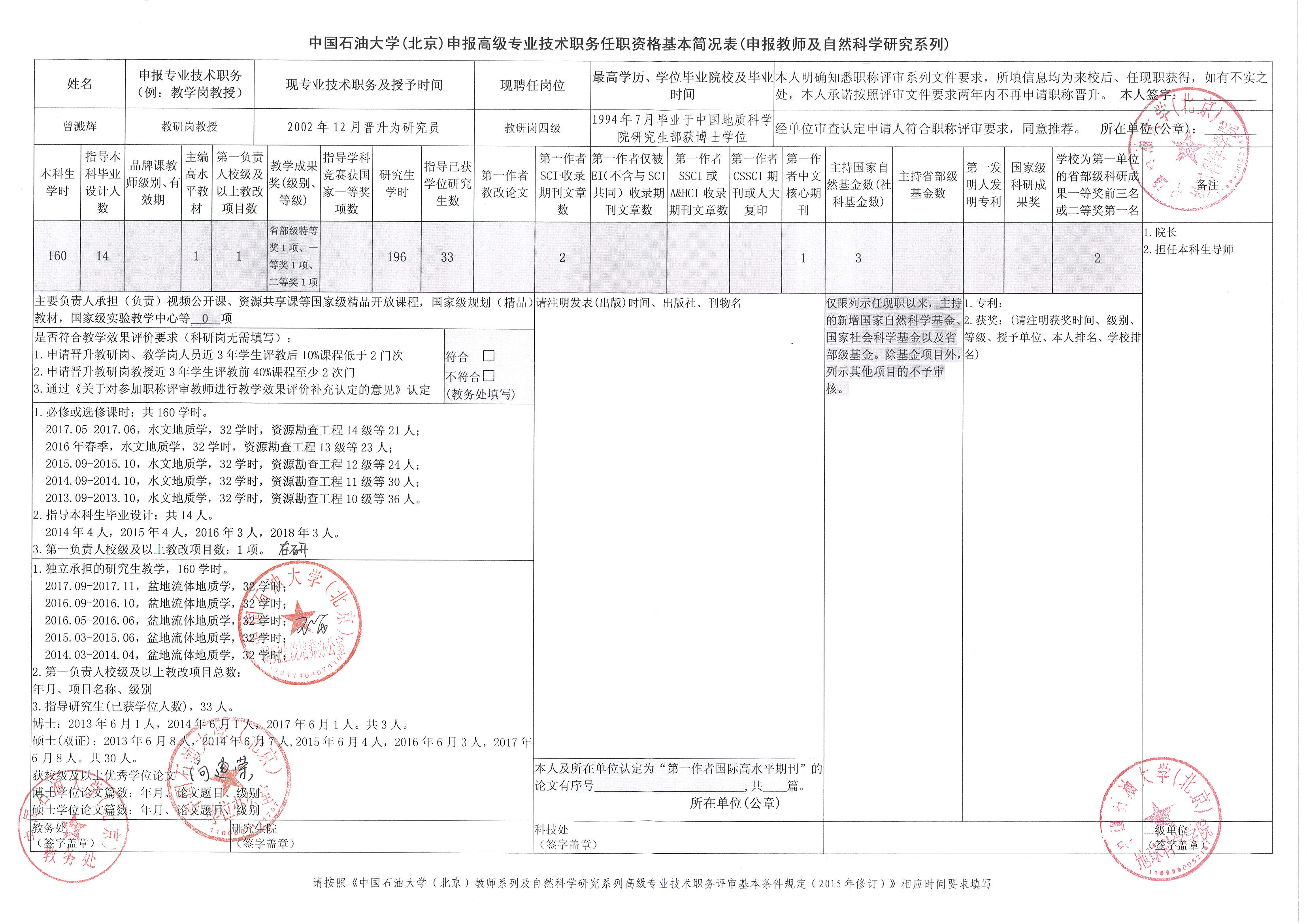 根据《中国石油大学(北京)关于2018年度专业技术职务评审工作的通知》的要求,学院现对我院申报高级专业技术职务平转人员材料进行审查,并将申报人员“申报高级专业技术职务任职资格基本简况表”、“职称评审标准自查、审查表”进行公示,公示期自2018年5月25日—5月31日,共计7天,有异议者请于公示期内联系地球科学学院院办。