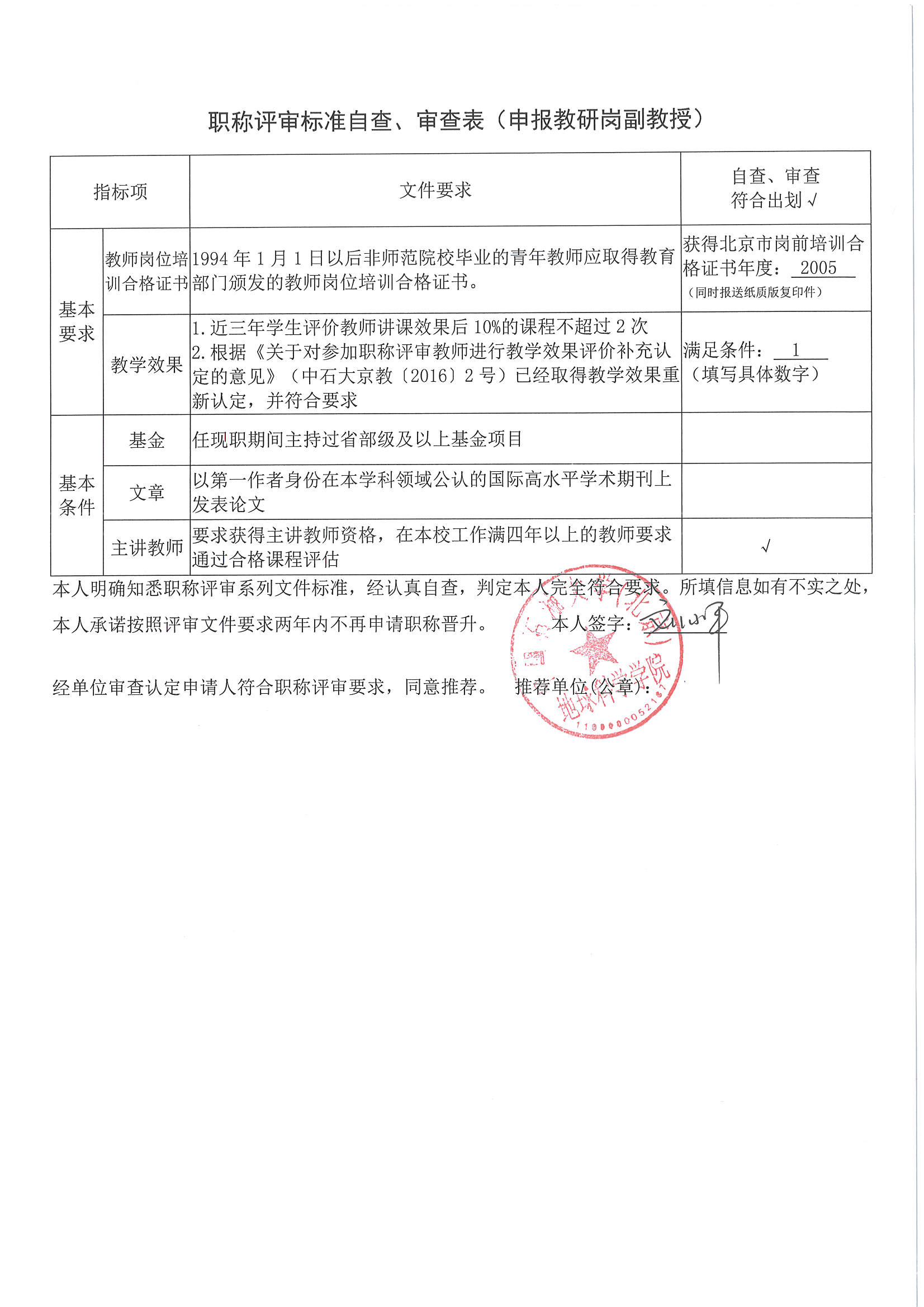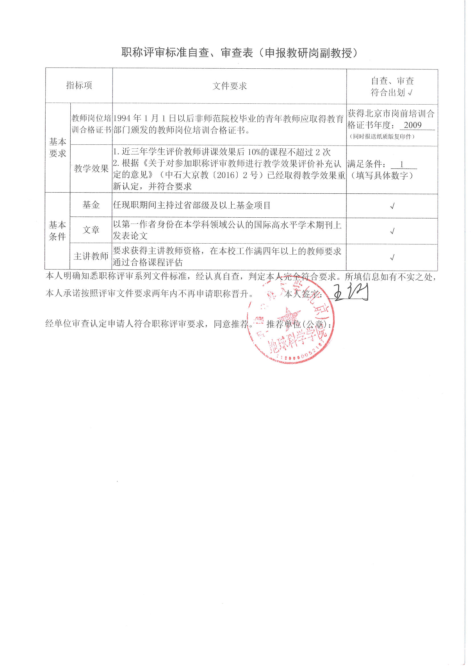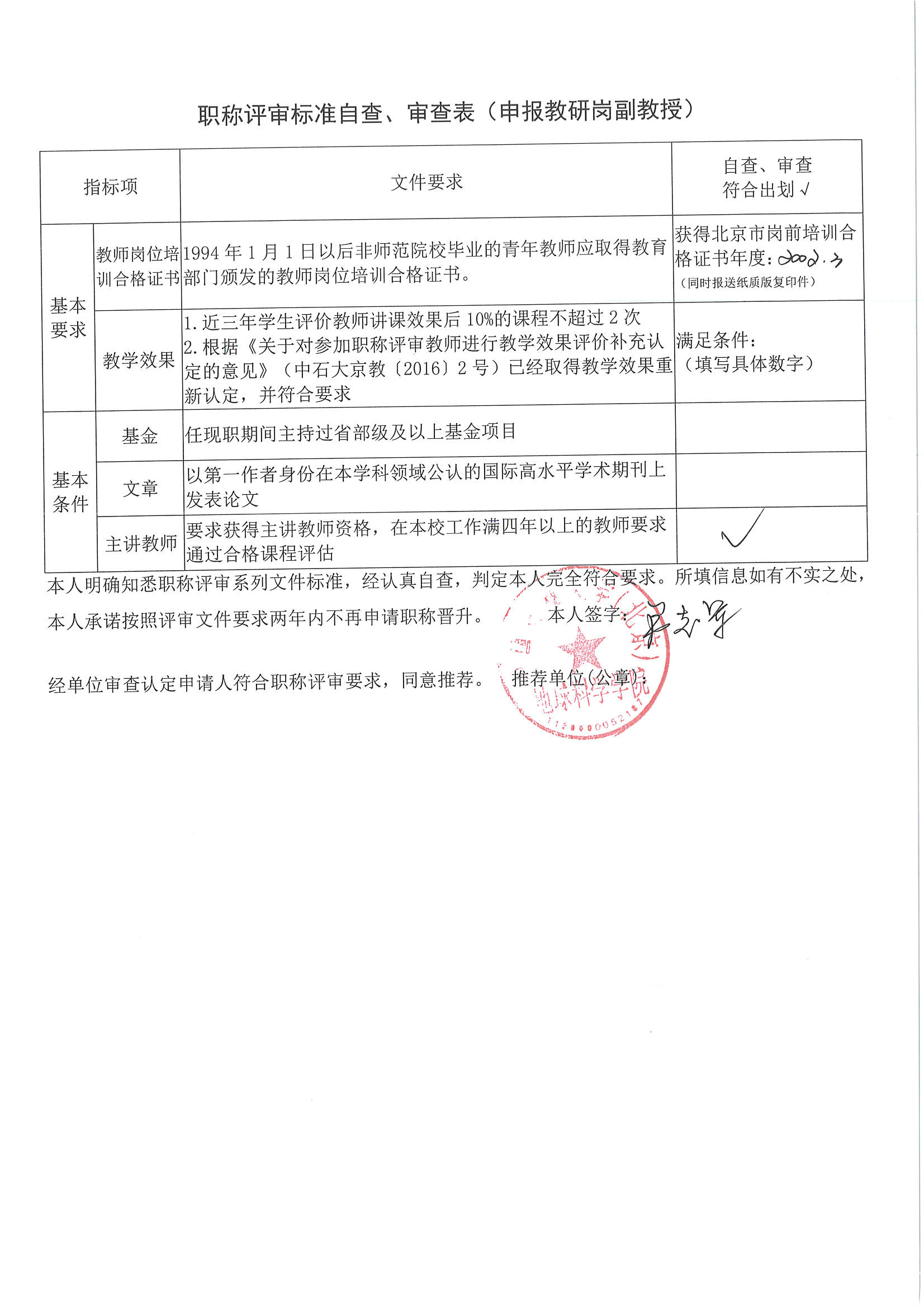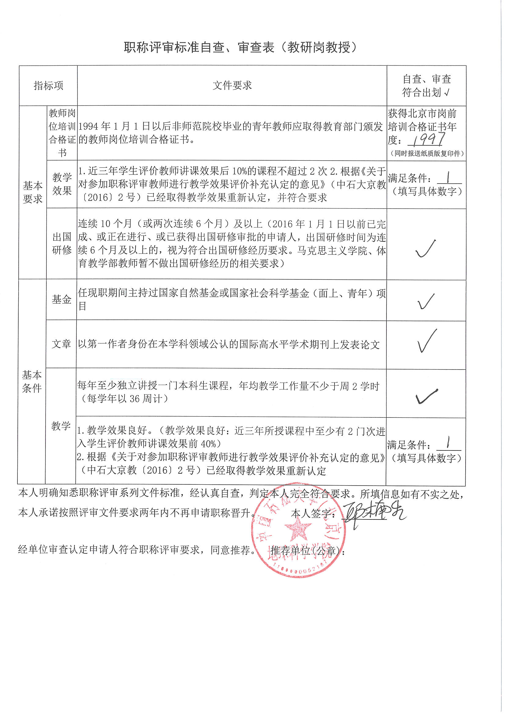根据《中国石油大学(北京)关于2018年度专业技术职务评审工作的通知》的要求,学院现对我院申报高级专业技术职务平转人员材料进行审查,并将申报人员“申报高级专业技术职务任职资格基本简况表”、“职称评审标准自查、审查表”进行公示,公示期自2018年5月25日—5月31日,共计7天,有异议者请于公示期内联系地球科学学院院办。