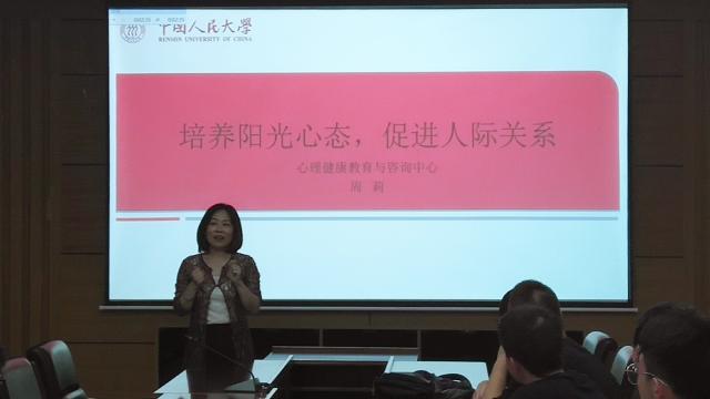 2019年6月19日,地球科学学院邀请中国人民大学心理健康教育与咨询中心副教授、北京社会心理学会理事周莉以及学院各班级心理委员在地质楼204举办“培养阳光心态,促进人际关系” 主题心理讲座。