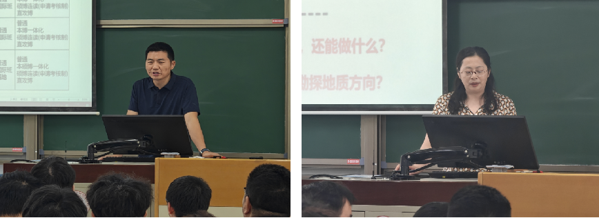 随后,罗情勇、余一欣、孙海涛、刘钰铭、陈冬霞教授分别围绕油气地球化学、构造地质学、沉积学与储层地质学、油气田开发地质、油气田勘探地质学五个研究方向,详细解读师资团队构成,并分享学科前沿动态与热点问题,为学生考研方向选择提供专业依据。