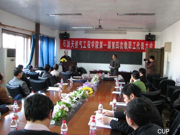 2008年2月29日下午2:00点,在雄壮的《国歌》声中,石油天然气工程学院第一届第四次教职工代表大会,在学院会议室隆重开幕。全院各系的近30位正式代表参加了会议,部分教师代表列席了会议。校党委书记蒋庆哲教授出席会议并作重要讲话。此次会议的主题是“深化改革、求实创新、开拓进取、构建和谐”。