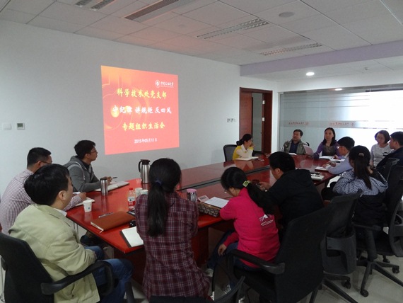 为了全面落实党中央关于反腐倡廉的决策部署和工作方针,充分认识“守纪律、讲规矩、反四风”的时代内涵和现实意义,2015年5月11日下午科技处党支部召开了“守纪律、讲规矩、反四风”的主题组织生活会。科技处全体党员参加会议,会议由科技处党支部书记王力清主持。