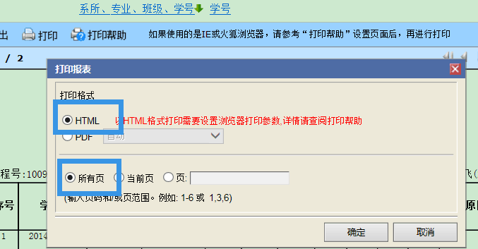点击打印成绩单按钮,弹出如下对话框,点击打印按钮
