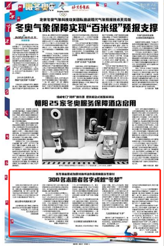 以冬奥志愿者为题材的书法作品现身延庆冬奥村发布时间:2022-01-21 | 来源:北京青年报 | 浏览量: