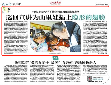 北京青年报、北京头条客户端报道石大师生赴贫困地区助力脱贫攻坚