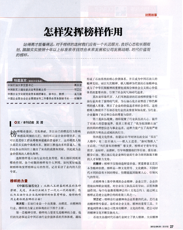 党委书记蒋庆哲就怎样发挥榜样作用接受中国石油石化杂志采访