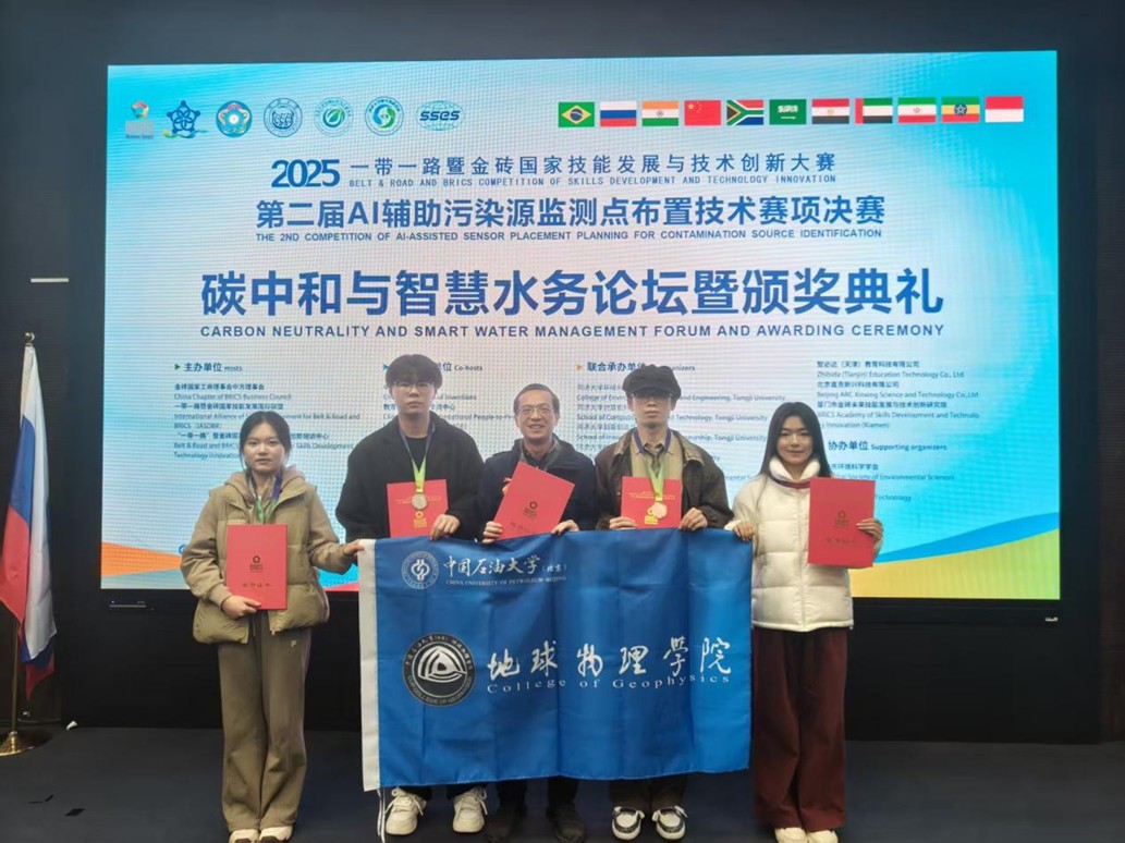 11月22日,由金砖国家工商理事会中方理事会、“一带一路”暨金砖国家技能发展国际联盟、“一带一路”暨金砖国家技能发展与技术创新培训中心联合主办的2025“一带一路”暨金砖国家技能发展与技术创新大赛——第二届AI辅助污染源监测点布置技术赛项决赛在同济大学举行。本次比赛汇聚了全国36所院校的80余支参赛队伍。中石大地球物理学院参赛团队获本科组二等奖1项、三等奖1项,指导教师芮振华、陆杭波获“优秀指导教师奖”,学校获“优秀组织奖”。