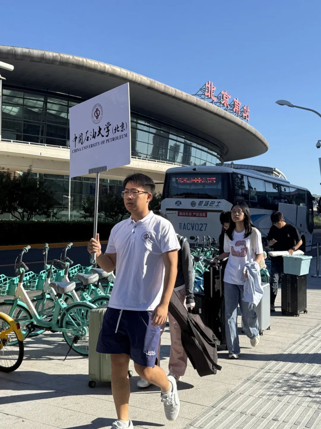 为方便新生顺利到校,中石大在北京站、北京南站、北京西站、北京朝阳站及北京丰台站设置专属接站点,为初来乍到的新生们提供贴心温暖的接待服务。