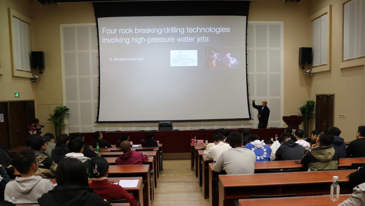 10月24日下午,中国工程院外籍院士、澳大利亚工程院院士、中石大兼职教授Michael Hood应邀做客海风讲坛。中国工程院国际合作局一处处长刘畅,中国工程院院士、中石大石油工程学院教授李根生,国际合作与交流处、碳中和未来技术学院相关负责人及100余名师生代表参加报告会。报告会由李根生院士主持。