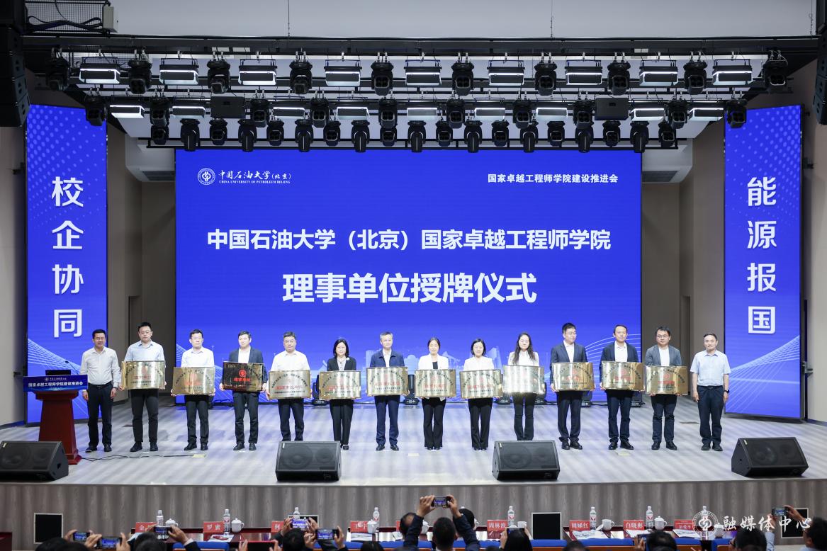 在全体参会人员的共同见证下,德吉夫、王同奇、理事长和副理事长单位领导共同为中国石油大学(北京)国家卓越工程师学院揭牌。文永红、张广清为理事会理事成员单位授牌。