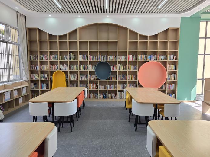 为了给孩子们创造更加舒适、温馨的阅读环境,从书架的高度到桌椅的摆放,图书室的每一个设计细节都充分考虑了孩子们的使用习惯和身体发育特点。柔和的色彩搭配、宽敞的空间布局,让整个图书室充满了童趣与温暖。