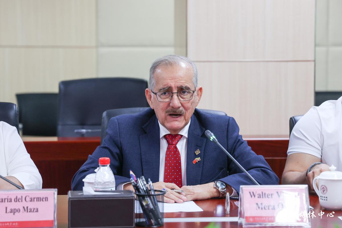 Walter Vicent Mera Ortiz感谢中石大一直以来对瓜亚基尔圣地亚哥天主教大学的友好与重视,希望两校在人才培养、学科建设、科学研究方面有更加深入的合作,尤其希望中石大在新能源与再生能源专业建设方面提供建议和帮助。
