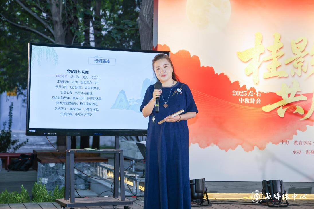 9月26日晚,由中石大教育学院、党委宣传部联合主办,海燕文学社承办的2025年“点·石”中秋诗会在中石大风华林苑举办。诗会以“桂影诗声共月明”为主题,吸引了全校近400名师生齐聚,共庆佳节。