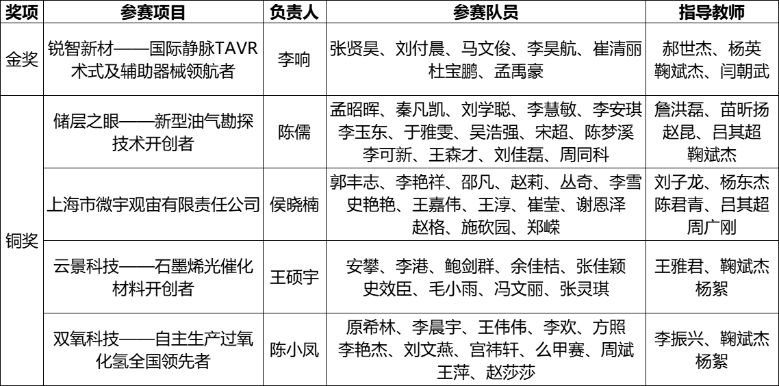近日,教育部公布了第七届中国国际“互联网+”大学生创新创业大赛获奖名单。中国石油大学(北京)新能源与材料学院学生李响、张贤昊、刘付晨、马文俊等的参赛项目“锐智新材——国际静脉TAVR术式及辅助器械领航者”脱颖而出,获大赛金奖。这是学校首次在该赛事中获得全国金奖。另有4项参赛项目获全国铜奖。