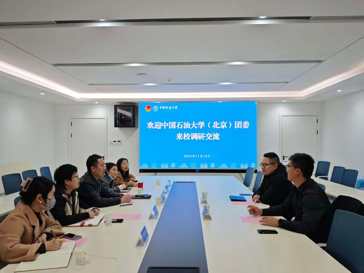 在中国地质大学(武汉),中石大团委专题调研了地学文化美育浸润范式、长江大保护社会实践专项组织、科技创新一院一品管理等工作,并参观了逸夫博物馆科普基地。座谈会上,双方就社会实践常态常效路径探索、行业特色校园文化体系构建、科普赋能大中小思政一体化建设、仪式教育铸魂育人创新机制等方面进行深入交流。