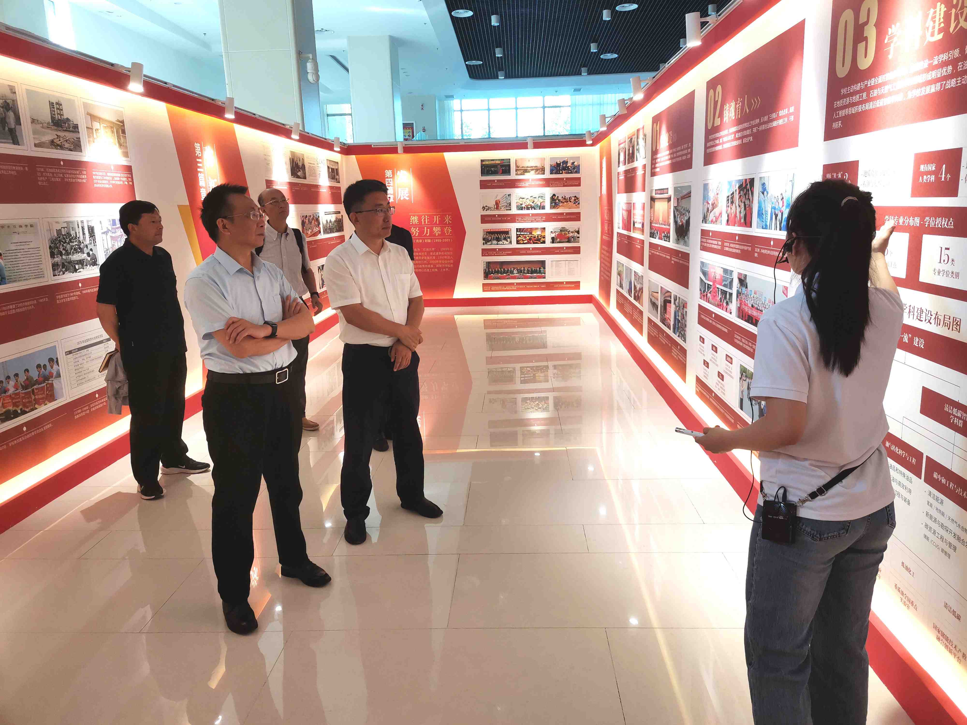 调研期间,曹友谊一行实地参观了学校办学成就展、校园全景沙盘和红山湖。
