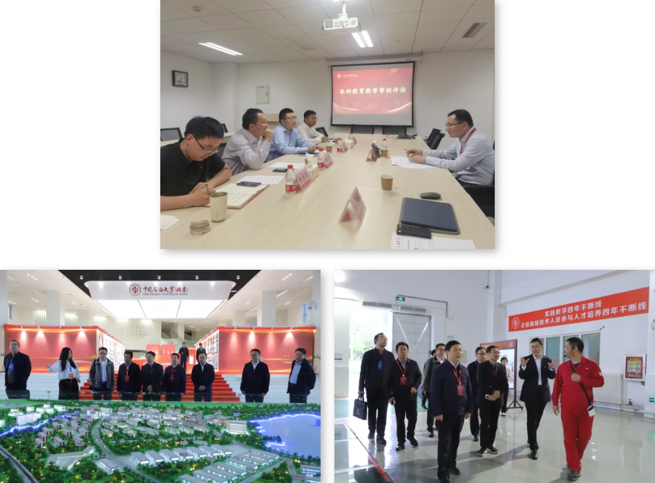 入校评估期间,专家组一行集体考察了“勇担时代使命 矢志能源报国”学习贯彻习近平总书记重要回信精神展厅、校史馆、油气资源与工程全国重点实验室、教学演示中心等,通过走访调研、听课看课、深度访谈座谈等方式对学校本科教育教学情况进行了全面深入的评估考察。部分专家专程赴克拉玛依校区,对校区领导和师生进行访谈,并集中考察了学校办学成就展及校区沙盘、C8教学楼化工专业实验室、图书馆、F4采油鉴定厂房等。