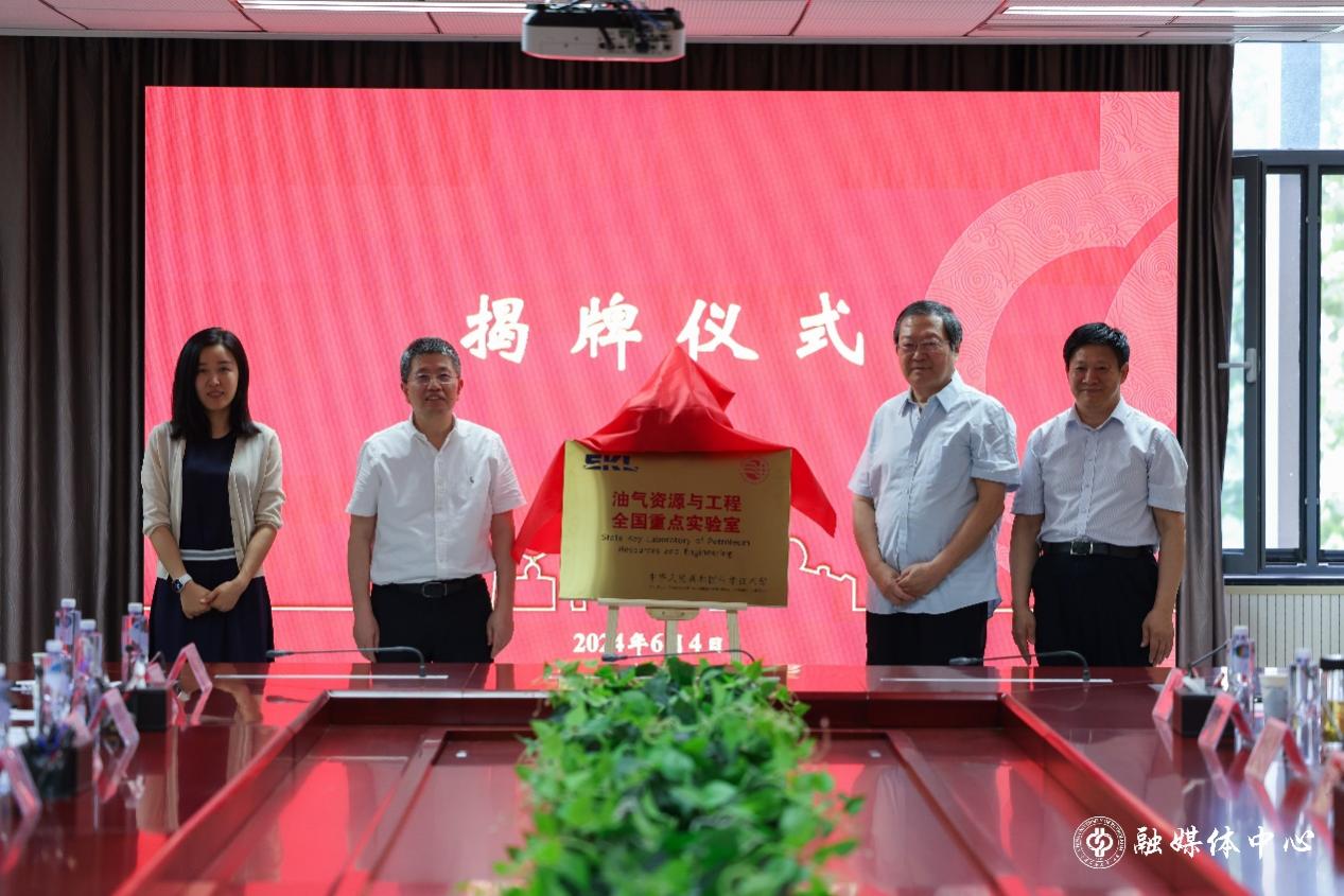 童杨、金衍、贾承造和李根生共同为“油气资源与工程全国重点实验室”揭牌。金衍宣读了《中国石油大学(北京)关于聘任油气资源与工程全国重点实验室第一届学术委员会的决定》的文件,并为学术委员会委员颁发了聘书。