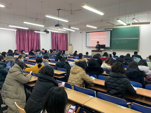 1月10日下午,中石大外国语学院召开2021年度处级干部考核述职会暨学期末全体教职工大会。学院全体班子成员、教职工参加会议。