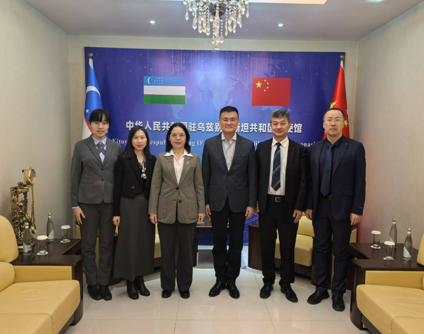 12月11日,代表团一行访问了中国驻乌兹别克斯坦大使馆,并与大使于骏进行了深入交流。张红艳介绍了学校办学历史和主要成绩,并对大使的热情接待表示衷心感谢。于骏充分肯定了学校的办学成果,希望校区充分发挥地缘优势和办学条件,持续推进来华留学生教育,不断深化中乌两国的教育文化交流,助力“一带一路”倡议深入实施。