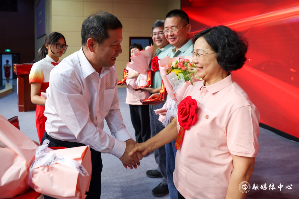 王同奇代表学校党委向全校教师提出了殷切期望。他指出,学校正处于抢抓战略机遇和推动高质量发展关键期,面临时代使命更重、办学空间增大、发展赛道拓宽的新形势。希望广大教师:一是要坚定信念守初心,担当“大使命”。将胸怀天下的价值理想追求与实现中华民族伟大复兴结合起来,将教育家精神融入落实立德树人根本任务,把“躬耕教坛、强国有我”落到实际行动中,强化对青年学生的政治引领、价值引领,确保党的事业和社会主义现代化强国建设后继有人,在至诚报国的“大我”追求中实现个人理想抱负。二是要明德修身长才干,砥砺“大德行”。要自觉砥砺品行、用优良德行,树立教师的崇高形象,引导学生走好成长的每一步。要苦练育人本领,树立终身学习的理念,以使自己拥有源源不断的力量源泉,时刻为学生提供鲜活的成长清泉。三是要躬体力行勇担当,展现“大作为”。站在知识发展前沿,遵循教育规律和人才成长规律,在潜心教书育人、勇攀学术高峰、弘扬人间正道上彰显担当、展现作为,在推动学校事业高质量发展的新征程上开拓新路、再创佳绩。