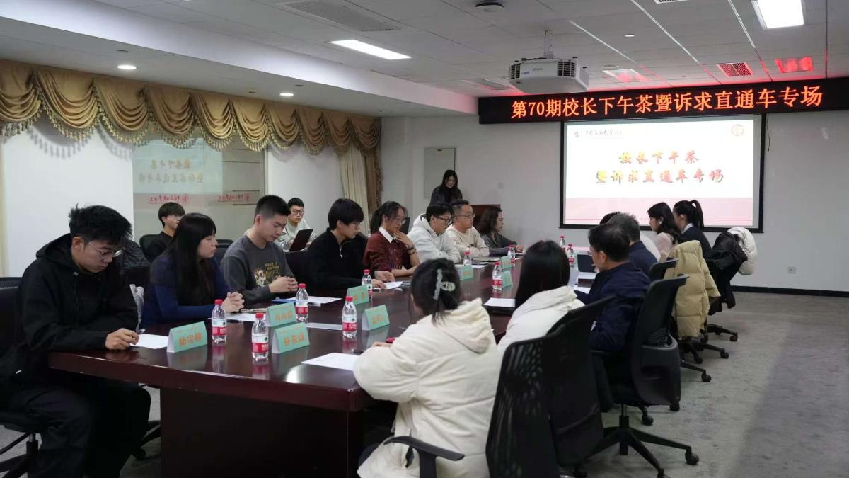 12月10日下午,中国石油大学(北京)举办第70期校长下午茶——诉求直通车专场。校长金衍与12名学生代表共聚一堂,面对面了解学生真实诉求,解决学生“急难愁盼”问题。