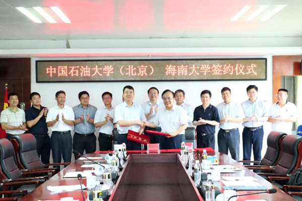 武耀廷对张来斌一行来访表示欢迎,从办学历史、办学理念等方面简要介绍了海南大学的基本情况,并希望两校在海洋油气资源开发方面加强合作。张来斌从学科建设、科学研究、人才培养等方面介绍了石大的基本情况,指出两校开展深入合作是落实习近平总书记海南“4·13”重要讲话精神的举措之一,石大历来坚持开放办学的理念,两校应以中海油为依托,发挥各自优势,从海洋工程着手,逐步在海洋石油地质、海洋油气资源利用、化学工程与技术等方面开展全面合作。他强调,双方应以开展科学研究为基础,联合进行以工程博士为代表的高层次人才培养,两校通过优势互补与协同创新,必将实现合作双赢和共同发展。李中表示,中海油海南分公司将全力支持中国石油大学和海南大学建设南海资源联合研究院。