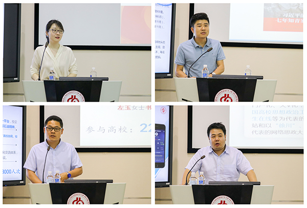 石大马克思主义学院副院长张明明、地球科学学院党委副书记周学智、石油工程学院团委书记刘东东、理学院团委书记胡锐围绕课程育人、实践育人、文化育人和网络育人等话题,作了交流发言。