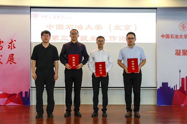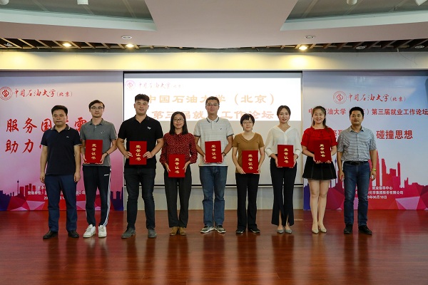 6月18日下午,中国石油大学举办以“凝聚智慧·碰撞思想”为主题的第三届就业工作论坛。党委副书记、副校长韩尚峰,万华化学集团人力资源总监赵继德,学生工作处、团委、就业指导中心负责人,各学院(研究院)学生工作负责人、全体辅导员及150余名学生代表参加了论坛。