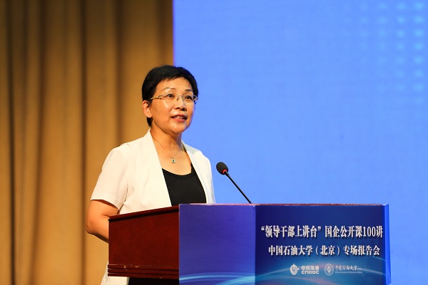 6月20日下午,“领导干部上讲台”——国企公开课100讲中国石油大学(北京)专场报告会在中油大厦三层报告厅举行。中国海洋石油集团有限公司党组书记、董事长杨华走上讲台,以“出于蓝·胜于蓝——从中国海油看国有企业的改革发展”为题,为石大700余名师生上了一堂深刻生动的主题思政课,把中国海油最新的发展成果、最鲜活的实践案例、最生动的时代故事带进了石大校园。