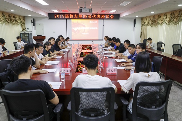 6月19日下午,中国石油大学召开2019届毕业生校友联络员代表座谈会。党委副书记、副校长韩尚峰与14名毕业生校友联络员代表座谈交流。党政办公室、学生工作处、就业指导中心负责人参加了座谈会。