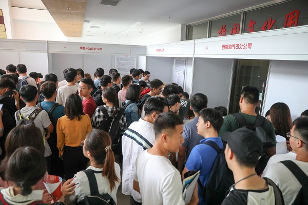 9月10日上午,中国石油2020届毕业生校园招聘宣讲会首站在中国石油大学中油大厦举行。大庆油田有限责任公司、长庆油田分公司、新疆油田分公司、大港油田分公司、青海油田分公司、兰州石化分公司、大连石化分公司、锦西石化分公司、大庆炼化分公司、北京天然气管道有限公司、西气东输管道分公司、川庆钻探工程有限公司、长城钻探工程有限公司、东北销售分公司、工程建设有限公司、中油工程项目管理公司、安全环保技术研究院、物资有限公司等38家单位的近百位代表以及2000余名石大应届毕业生参加了宣讲招聘活动。