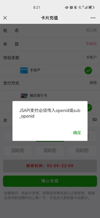 如您在微信企业号中为您的校园卡充值遇到“JSAP支付必须传入openid或sub_openid”弹窗问题时,是由于旧的微企身份缓存未清理导致的,请按照以下步骤操作:
