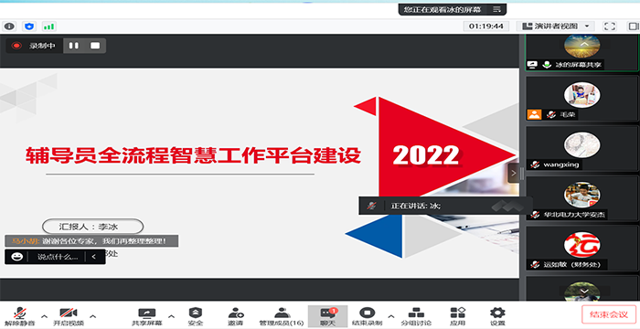 中石大举办2023年教育部专项信息化项目校内论证评审会5月23日,信息化管理处组织对申请2023年教育部专项信息化项目的校内论证会,本次论证会采取腾讯线上会议的形式,会议由信息化管理处处长张云祥主任主持,6位校内外专家及参与答辩的14个项目负责人参加...2022-05-24 -
